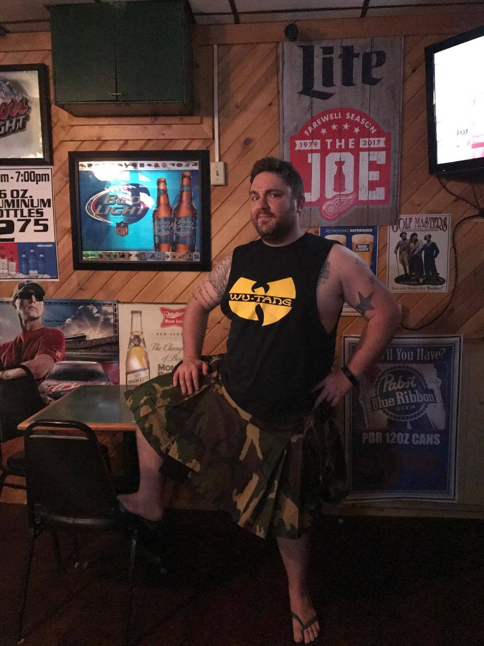 The kilt offered some cooling drafts as well as the increased movement below deck. Ever more so than the heavier wool fabric of the kilt worn years ago, this camo kilt was light and breezy. I felt air circulate. I felt the shifting of my twig and berries. At one point I experience a physiological response due the increased sensory stimulation. However natural (and even non-sexual) arousal is, it was a brief worry. Thankfully my bodily control is on point, and I got it under quick control.
