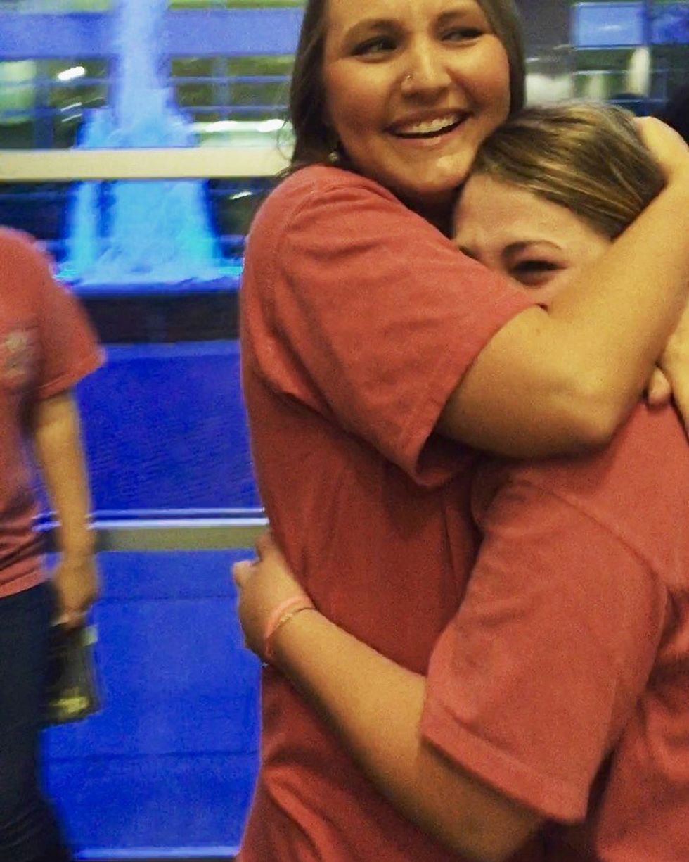 Finally, it was bid day. I somehow decided to stay through the week and ride it out, and even signed a bid. I fell in love with one. I remember sitting there in the pi-chi group in the back of the REC center with my heart pounding, knowing if Delta Gamma was not the name on that bid, I was going to cry. We all stood up, ripped open the bid, and there it was, a bid extended to me from Delta Gamma. Tears ran down my face. It didn't make sense why I would feel like this. We ran through the green, with our newest pledge class, all screaming in excitement and, for the first time, I ran "home."