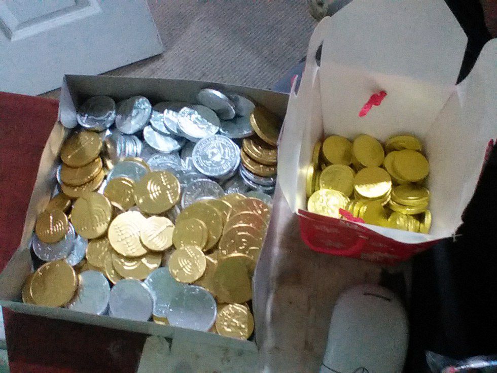 That's when the Christmas stuff started going on clearance at the stores — chocolate coins included.