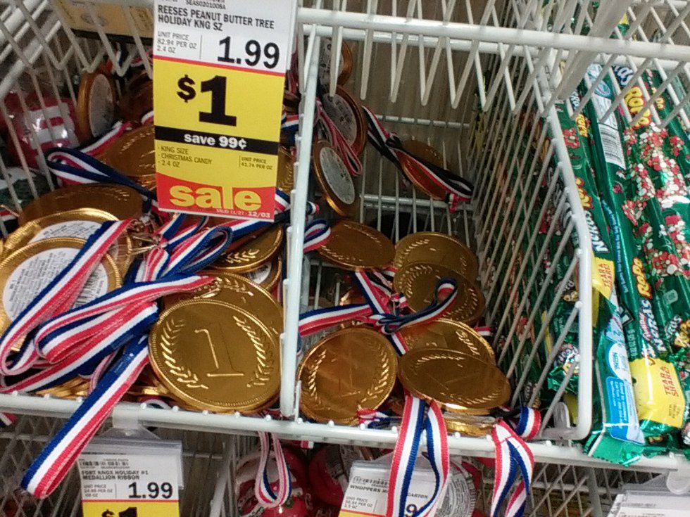 Yep that's right, they sold large chocolate medals, found 'em at a local Meijer, they are just as good as the coins are.