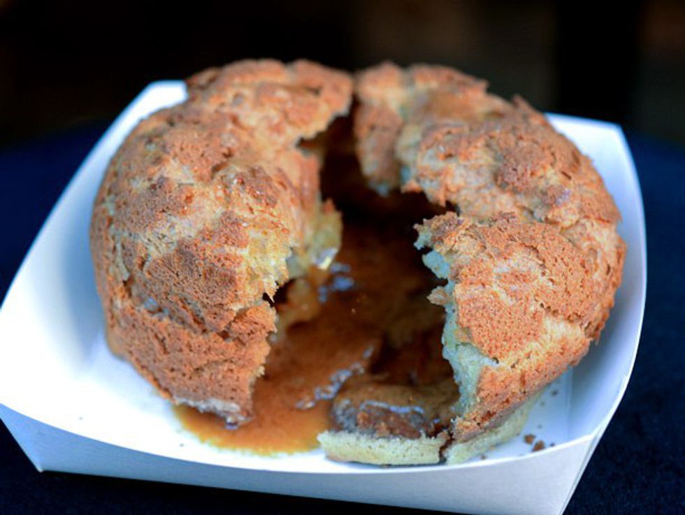 large puff with a crunchy coating on the outside, filled with a small pool of