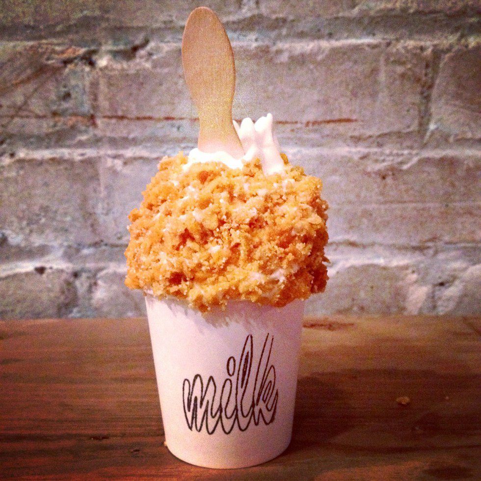 Inspired by the dregs found at the bottom of your cereal bowl, Momofuka milk bar decided to make $4 soft serve based off of that sugary-milky taste we all love! The taste of the ice cream will bring you right back to those times where you had a bowl of Fruity Pebbles, Corn Flakes, Rice Krispies etc...or the times you wished you had a bowl of that sugar processed junk because your mama and dada wouldn't let you have that garbage. Momofuka, NYC, is quite the experience--starting from the flavor of the ice cream, to the toppings (all different types of cereals, sprinkles, etc). At this whimsical joint, they also sell pies, cookies and cakes while their menu is changing constantly. I have yet to try this incredibly unique creation, but I intend to do so soon.