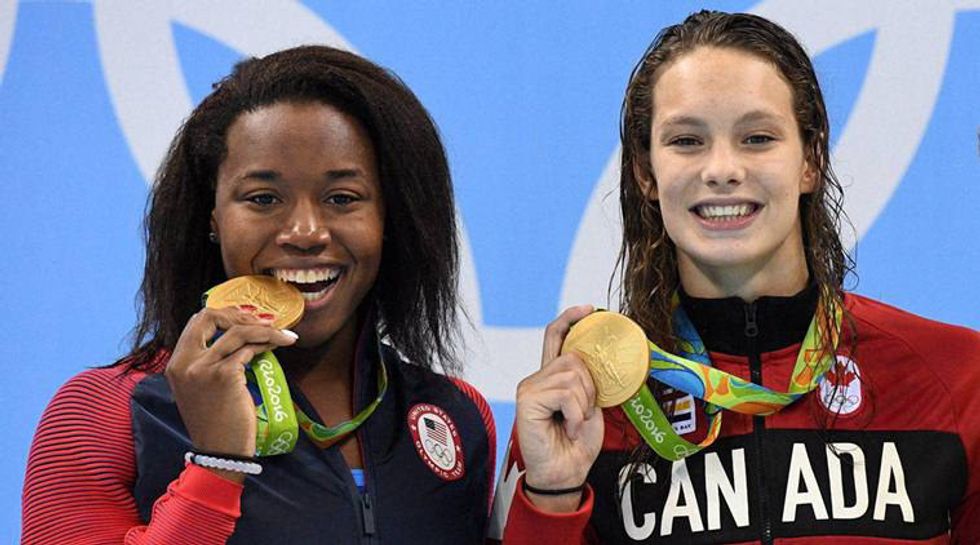 6. Simone Manuel tied for gold with Canadian Penny Oleksiak in the 100 free.