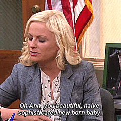 2015 has ended and 2016 has begun. And with the New Year comes a new semester, and the chance to get rid of some old bad habits and make some positive changes. But the first week back at school, although full of friends and fun, can be really, really weird. It seems like just about the time we got used to being on winter break, whether at home or on vacation, we have to go back to dorm rooms or apartments. This means going back to meal plans and late-night junk food, classes and homework, and a whole new schedule. Sleep schedules have to be readjusted, and some of us have to get used to sharing bedrooms and bathrooms with other people again. It’s stressful to think about a semester’s worth of work for each new class, but at the same time stress-free because most courses have yet to assign much homework. It’s great to see friends again, but the constant barrage of people can be simultaneously overwhelming. To encapsulate the weirdness that is the first week of a new semester, I’ve compiled some well-known reactions to syllabus week situations from some of our favorite fictional characters, Leslie Knope and Ron Swanson.