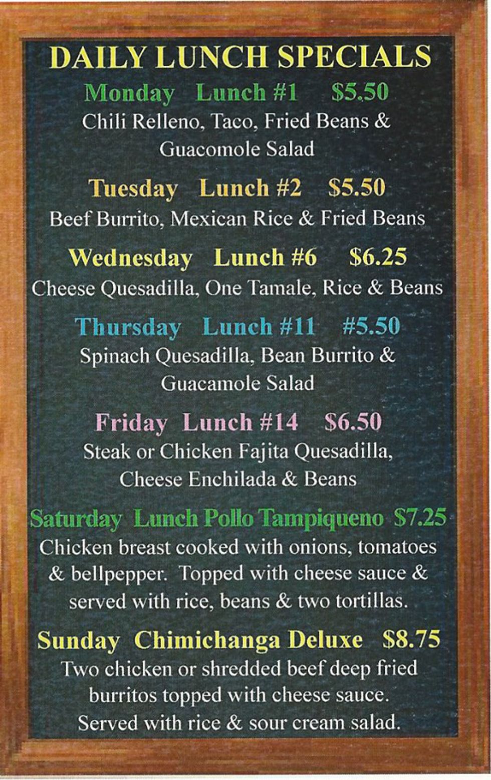 This looks like something you could mess with. Prices below $10, organized lunch specials, and lots of drink options. Looks like a guilty pleasure palace to me.Weeknight with the Squad