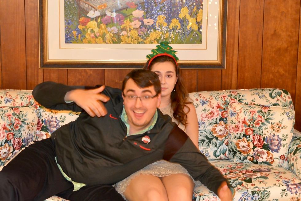 After pizza and some Christmas cookies for dessert, it's time for our annual family pictures. Every year without fail we all gather in my grandparent's living room and take a variety of family pictures. We all find a spot on or near their floral couch and keep swapping people out until we have all the combinations.