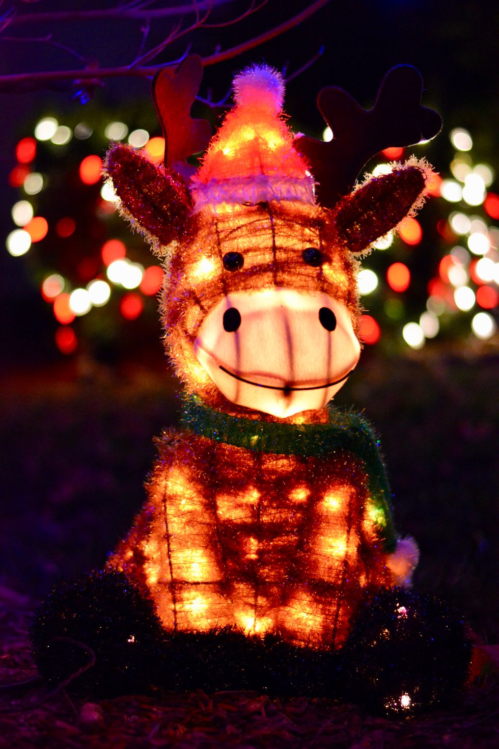 He tends to handle the string lights on our trees while I help set up some of the other items; my personal favorite being our tinsel moose.