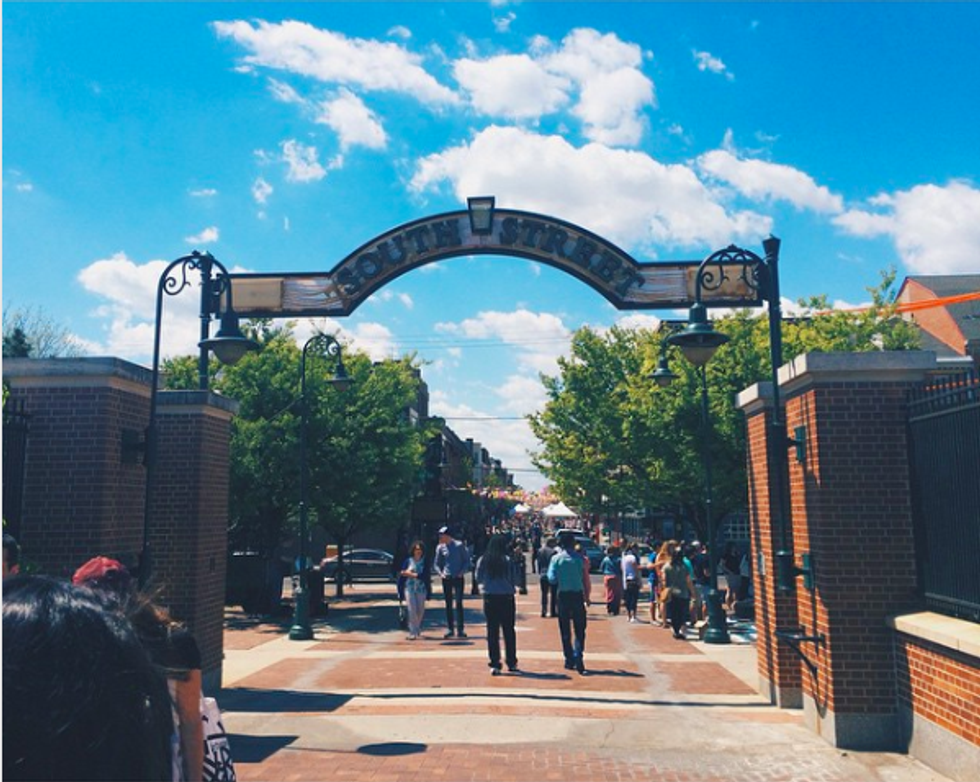 South Street has an insane amount of local fame. There are so many different places to eat and shop, and the lively aesthetic makes it a great place to walk around. The buildings, sidewalks, and even trash cans are covered in art. Far east, there is the South Street Diner, which has been there for 33 years--practically an eternity in South Street time.
