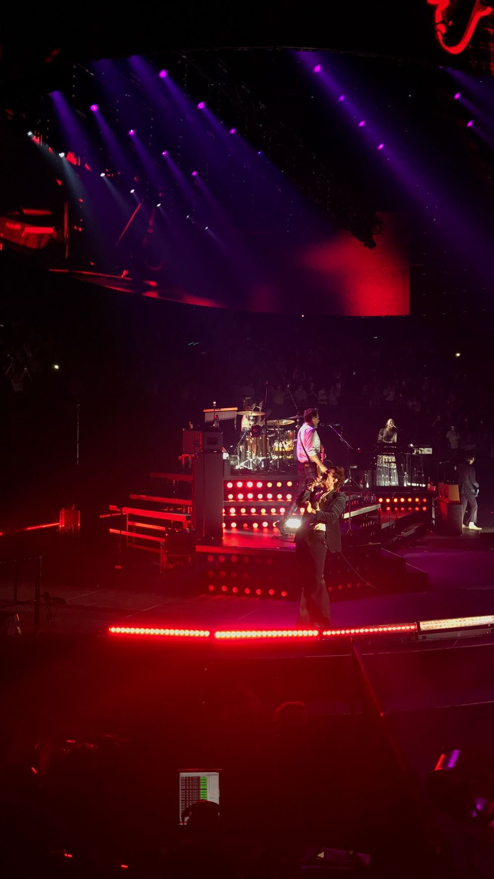 I entered through the main entrance, and as it was my first time inside, I rated it as one of the top concert venues I've been to. The vibe was full of intense happiness, excitement, and such a judge-free zone to dance my ass off and not care of what I looked like... which let me inform you, I did a lot of. I was unaware of where our seats were exactly, because my wonderful best friend and phenomenal parents surprised me with these tickets for my birthday, and to my extreme surprise we were the first row, to the left of the stage, right above the pit.