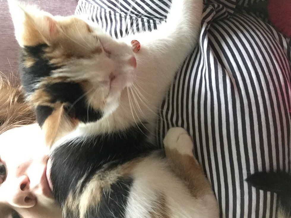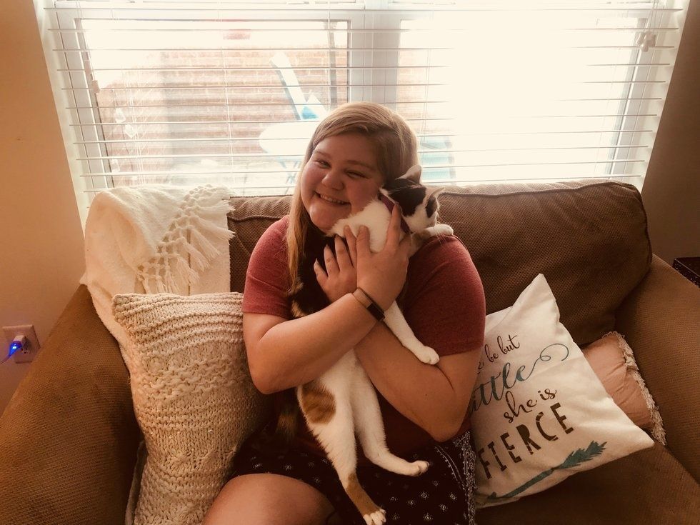If you decide to get a pet, you know you will never be alone. Someone will always be there to snuggle, or in my case, to sit on you and show you a sock she found on the ground.