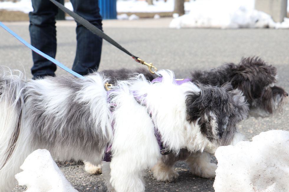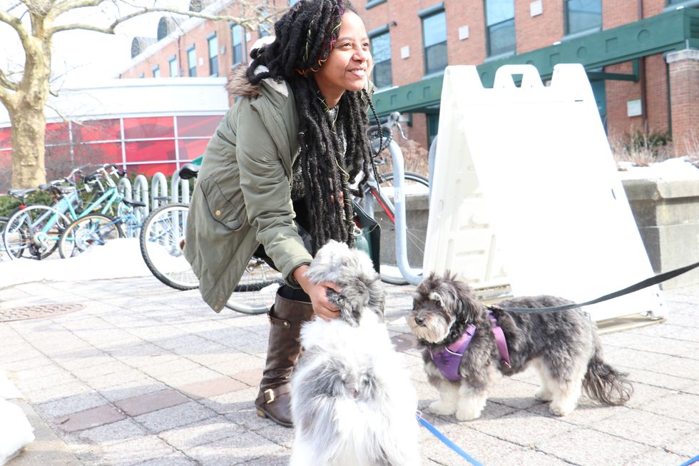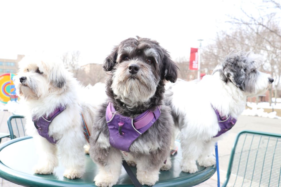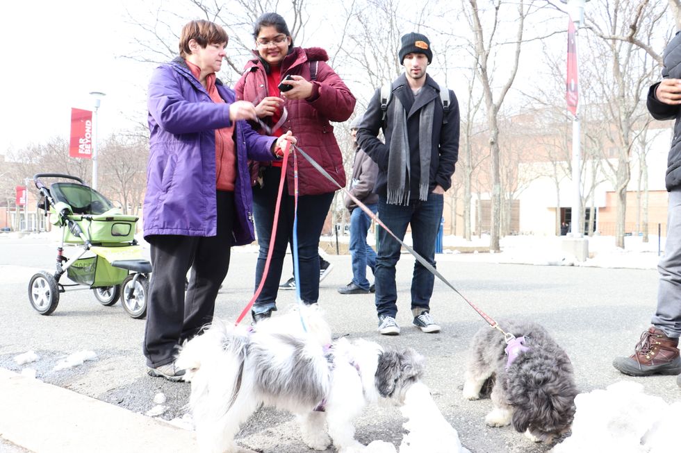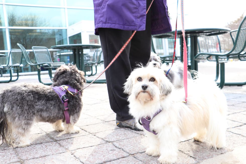 Cindy Crowell, 59, who lives in the neighborhood adjacent to Tabler Quad, comes to Stony Brook University's Academic Mall about five times a week to walk her three Havanese dogs, Marley, Indiana, and Lily, who she calls the Seawolf Pups. She's regularly approached by wide-eyed students who get excited to pet her dogs in between classes.