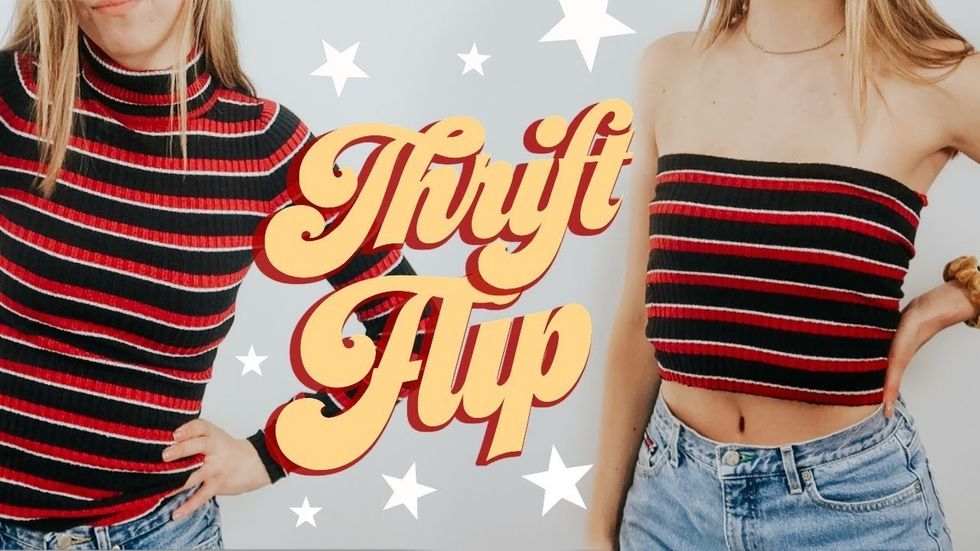 Weather you find it at a thrift store or in your closet, you can make a tube top out of almost anything. Just do a simple Youtube tutorial search on how to sew rather than buying simple new tops for every party you want to attend. And lose your suspicions about thrift stores. You can find many patterns, vintage, and newer items in its depths that can be made into any trend you could find in a Forever 21.