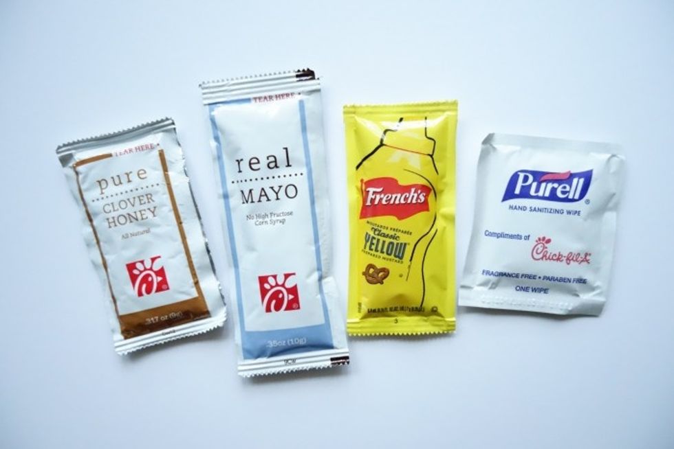 Take an excessive amount of condiments and plastic silverware from anywhere you eat