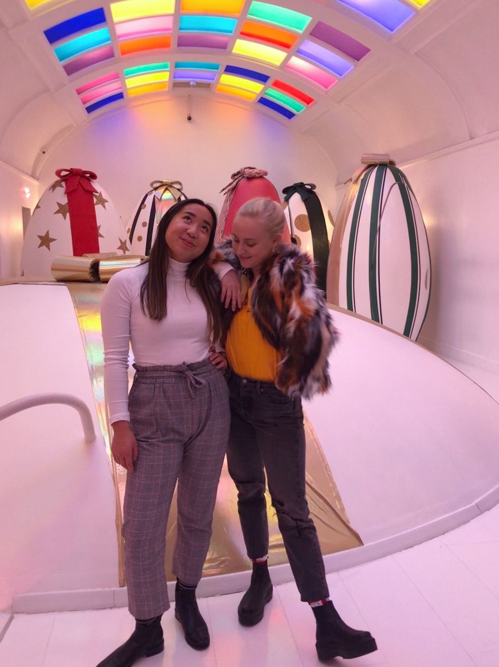 Sketch London is a posh restaurant with many gorgeous rooms available for tea, brunch, dinner, or whatever you might fancy. We had lunch in The Glade room, which is re-imagined as an ethereal, magical forest. The egg bathroom was set up for Christmastime and we easily spent 25 minutes in there taking cute pictures because LONDON.