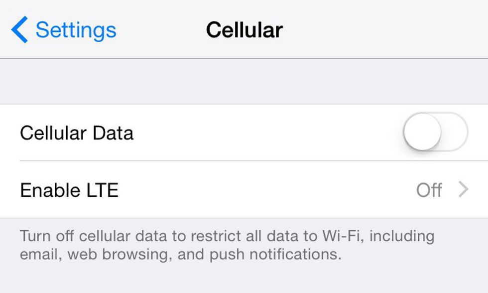 -Cellular Data: toggle switch to off