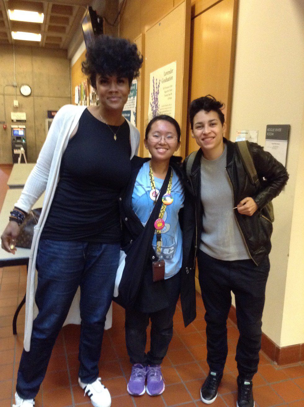 Meeting Sister Outsider was surreal. Denice was calm and super chill. Dominique was equally chill and friendly. I think I mentioned how excited I was to watch them perform or stunned that they were here. Southern Oregon University Poetry Slam team—Victoria Morgan, Asante Sankofa Foree and Bekah Krum—performed their brilliant pieces before Sister Outsider went on. Later that night, they performed new pieces and their well-known, individual poems such as "Dear Straight People" and "The Period Poem." After their performance, they held a small Question and Answer with the audience. I was one of the last two people to ask them a question.