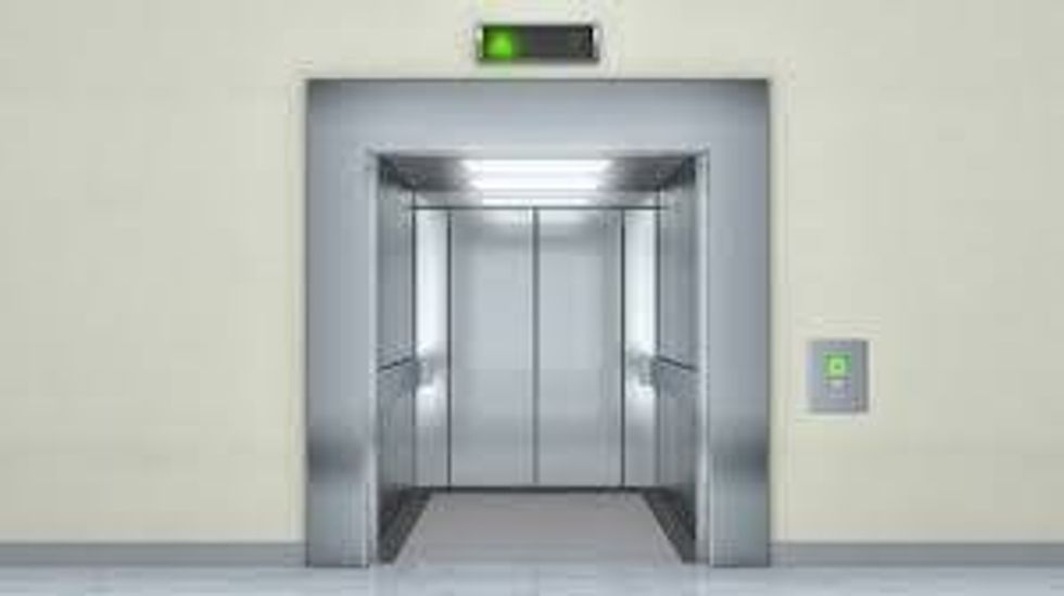 I pressed the up button for the elevator. I heard the familiar ding. The doors open. A man and a woman were already in there.