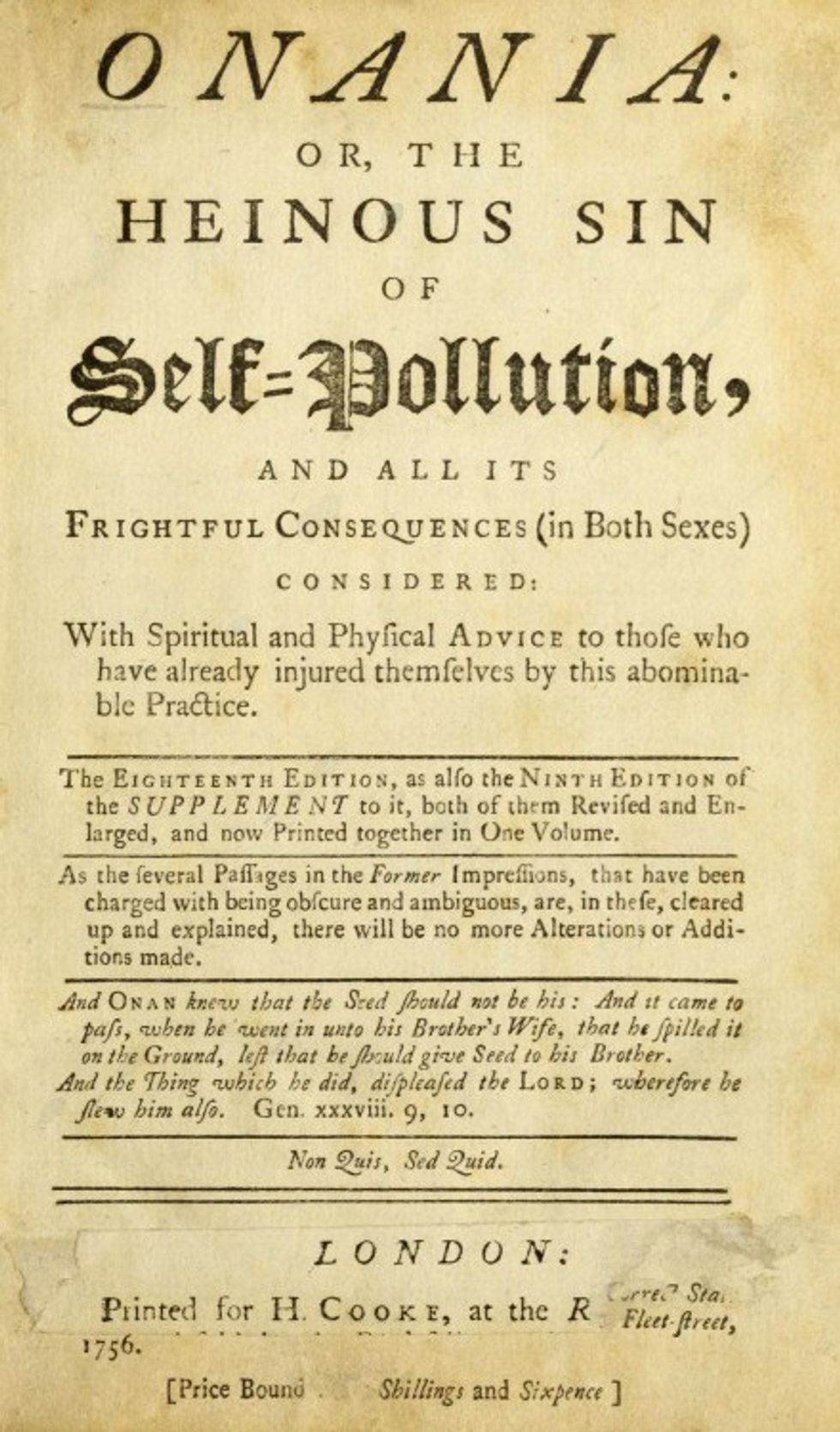 So how is masturbation not sexualized enough? Simple. It's seen as a total sin within most religions and it's almost as if the concept of masturbation as bad and gross thing is passed down as a norm in our society. How did this all begin? The earliest found document against masturbation is an 18th century pamphlet distributed in London in 1716 by Dutch theologian Dr. Balthazar Bekker titled "Onania, or the Heinous Sin of Self-Pollution, And All Its Frightful Consequences, In Both Sexes, Considered: With Spiritual and Physical Advice To Those Who Have Already Injured Themselves By This Abominable Practice." Ironically a pretty long title for a guy who wants to just get to the point that masturbation is bad. The link is there if anyone cares to read, but the main takeaway I got from it was that this guy seems really tense and he should really just needs a good ol' self pollutin'.