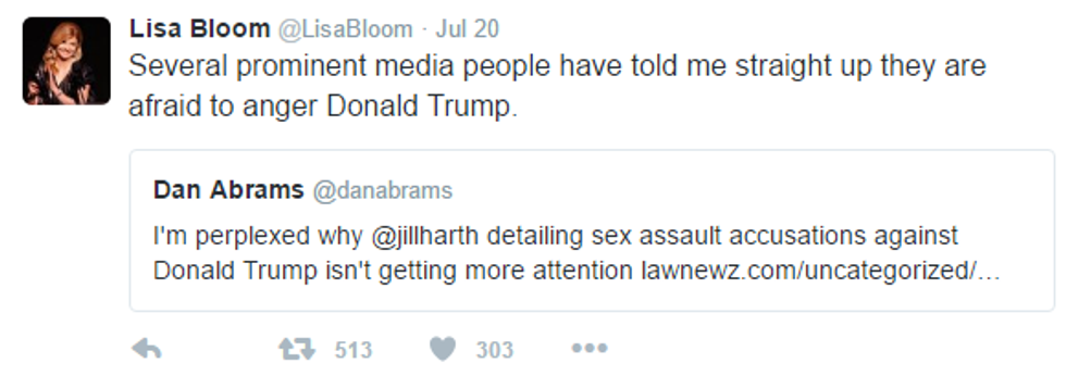 I don't know if any of these allegations are true, and I don't think it's my place to say anyway, but what I do know, is that you are much more likely to hear Hillary Clinton denigrated for her husband's past infidelity than you are to hear Donald Trump called out for not one, not two, but three women accusing him of sexual assault. Whether it's straight up fear or straight up misogyny, at the very least, these women deserve to have their stories heard to their rightful conclusions.