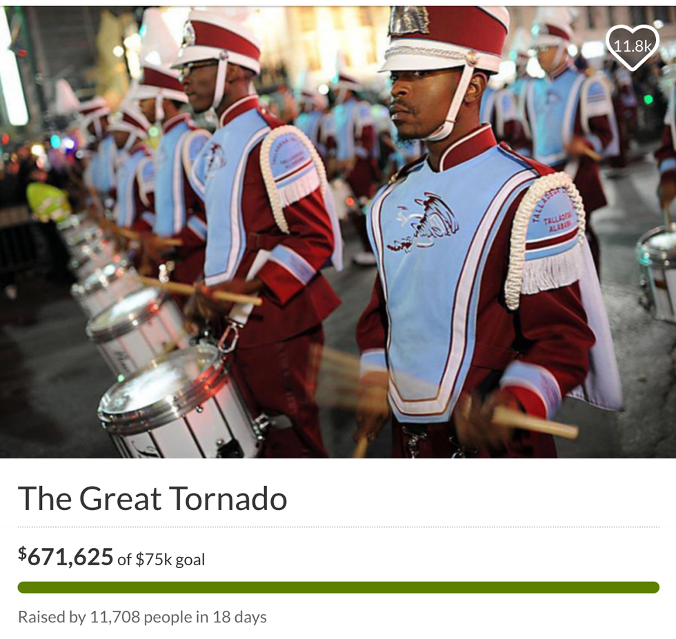 Within a view moments after the President of Talladega College, Dr. Billy Hawkins, was on The O’Reilly Factor, the bands GoFundMe accounts skyrocketed with donations. The GoFundMe account has a $671,625 total out of a $75,000 goal. The last donation was thirty-three minutes ago, so that means donations are STILL rolling in! That also means great things for the band and what they can do with the money in the future. They say funds will be needed by January 25th... I think they have more than needed! They started off really needed the money, they definitely got it!