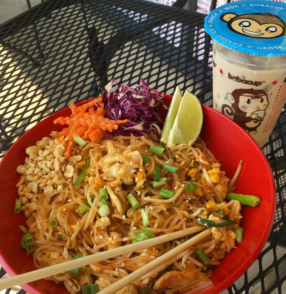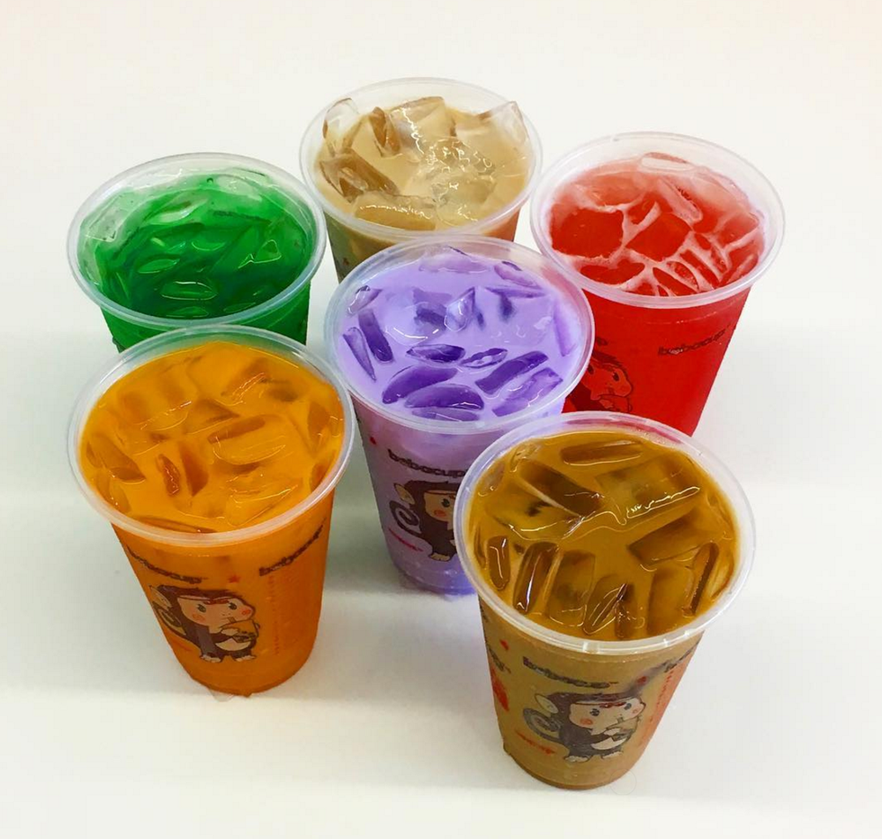 In this little Asian cafe there Taiwanese tea based beverages with little tapioca balls or fruit jellies that come in a variety of flavors known as boba/bubble tea.