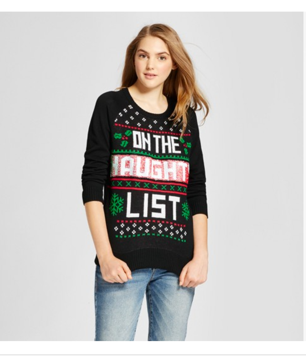 If you're not into dresses then Target has plenty of sweaters to get you in the Christmas mood. This sweater features a sequin panel in the middle that you can swipe up or down to be on the naughty or nice list. The sequins also add some sparkle for those Christmas parties. This sweater is $27.99.