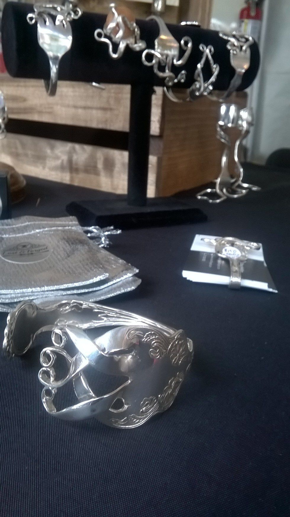 One of the coolest booths I ran into at Artscape was that of Douglas Heifetz who makes these cool pieces of jewelry (and many more) from metal kitchen utensils. His company, Lost & Forged, makes all sorts of beautiful and intricate jewelry out of knives, spoons and forks. Just weird enough to take anyone from basic to bonafide hipster, these pieces didn't just bend the metal, it bent the rules. While it's still frowned up to play with your food, at least you can wear your silverware.