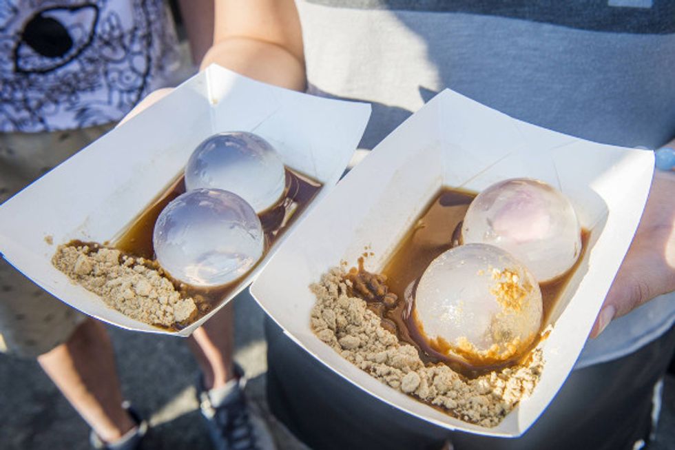 Most Japanese desserts are very clearly made to be eaten with both the eyes and the mouth. Japanese desserts typically feature beautiful flowers in a clear, gelatin-like substance. While these desserts may seem very difficult to make, a few tries will get you very close. Japanese desserts are really more like works of art than food.