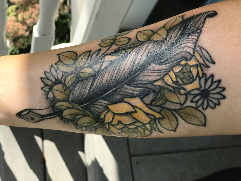 I recently got a tattoo of a quill pen and flowers on my forearm. My first tattoo. I am by no means an expert, but here are some tips and experiences that I have picked up along the way.