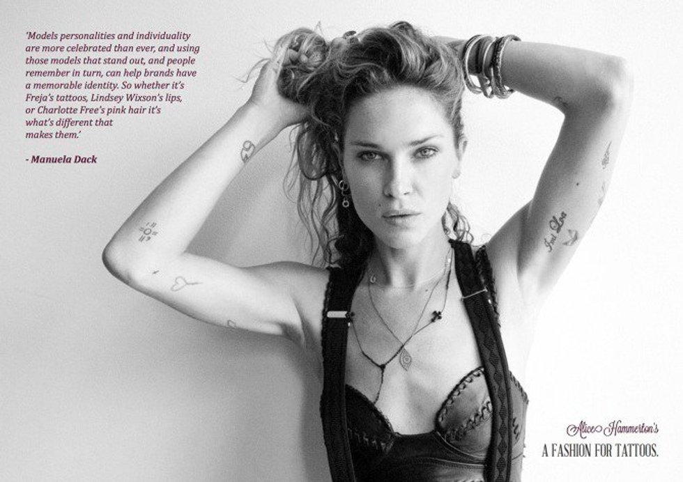 This runway season, tattoos were sported on some of the top models in the industry. What was once a taboo and unacceptable on models has now become the fashion statement and inspiration. Along with tattoos being on the runway, magazines have also allowed models to be photographed with tattoos. Fully tattooed bodies have been seen in multiple magazines all over the globe. The tattoos enhance the garments being modeled. They enhance the beauty of the model. These are the statements that make me want to get a tattoo.