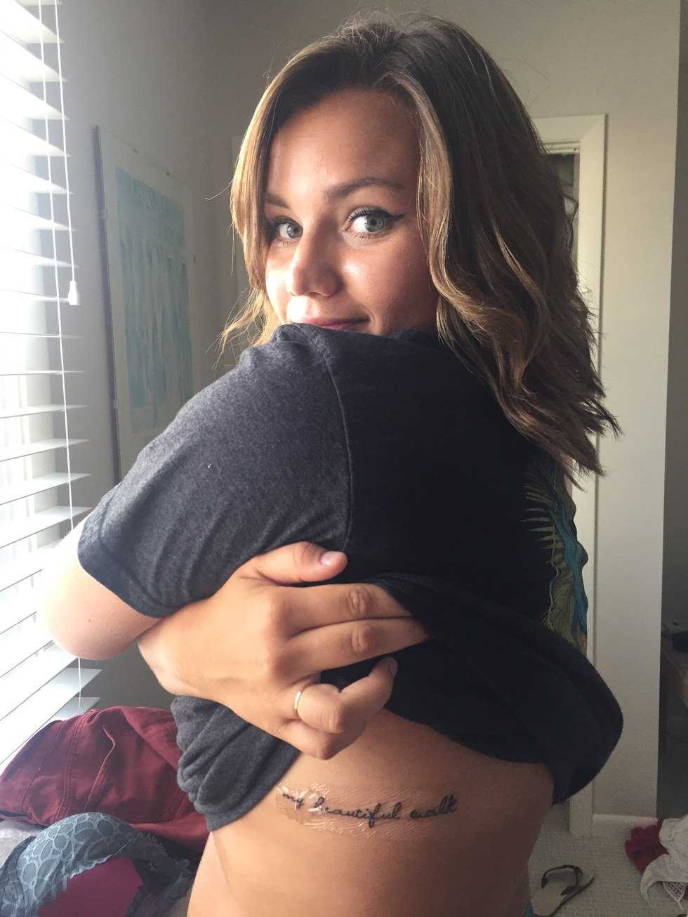 I want my tattoo to be a part of who I am -- that’s why I got it. On the side of my left ribcage are the words “My beautiful walk.” When I was 16 years old, I was baptized. My preacher told me that this would be my “most beautiful walk in the world.” I now walked with Jesus; however, I did not walk with Him hand in hand as I should have at the time. I did not know what it was like to put my trust fully in Him and I also did not know what it was like to seek Him and only Him in a time of need; not until a few months ago. When I say that I was not ready to be baptized, I truly mean it. I had not known true struggle, heartbreak, and rejection. I can honestly say that Jesus came last in my life a few months ago. How horrific! How could I have done that to my Creator? How could I have forsaken Him and nearly forgotten Him? I know now what it is like to fully depend on Him and boy, am I glad that I do! What a beautiful ride it’s been and will continue to be.