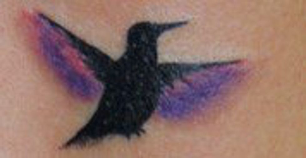 This is a picture I found on Pinterest, which almost all the rest of the tattoos have derived from. I do not want to copy anyone's skin art, but rather use it as inspiration. This is a tattoo of a hummingbird silhouette with watercolor wings and will be my final piece that goes with the theme of matching someone. This one I plan to get with my mom on my upper arm with a quote that has yet to be decided. My mom is quite possibly my very best friend. She's been there when I've cried myself to sleep, I've called her at 3 a.m. to have someone to talk to, and she's given everything to me. I want to carry her around with me as well. As soon as it is financially possible we will be getting this tattoo.
