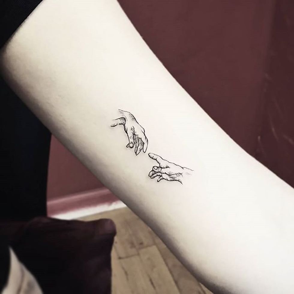 Michaelangelo's "Creation of Man" was painted on the ceiling of the Sistine Chapel, now I want it on my body. The way that someone thought of two fingers touching would spark mankind is interesting to me.