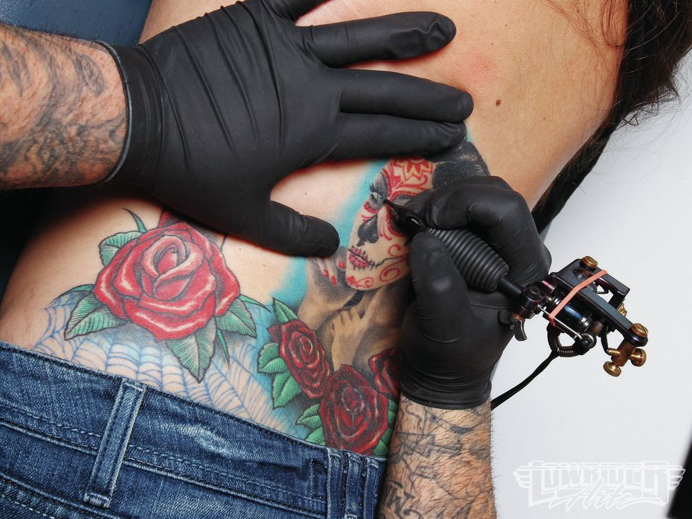 This large and beautiful tattoo is located on my left side, where my rib cage is. I can tell you for a fact that it hurts so bad. Or at least it did. I designed it myself, it is a dedication for my mom. I had already gotten the words "Stena" put on my rib cage.