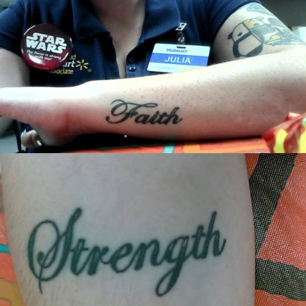 Tattoos are becoming more and more common. As I walk through malls, downtown streets, and into businesses, I start to see more and more tattoos. There seems to be a connection between the person and why they received the tattoo. I can't help but wonder the significance of the tattoo. In order to see the different connections between people and their body art, I decided to ask them to tell me about their tattoos, and what they represented for them.