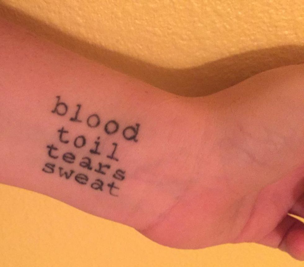 “On May 13, 1940, Winston Churchill gave a speech to the House of Commons in which he asked for a vote of confidence in his impending term as prime minister. In that speech, he said, 'I have nothing to offer you but blood, toil, tears, and sweat.' Which, in a sense, is all any human being could ever offer anybody. So Churchill was essentially saying, 'all I can give you is my everything,' which has stuck with me since I began studying history. Churchill was named prime minister at quite possibly the lowest point in British history -- World War II. Britain was an obvious target for Hitler and the Nazis, who had just taken France when Churchill gave this speech. He was tasked with the enormous burden of taking care of a country that was inevitably going to be attacked by some of the strongest forces the world has ever seen. And yet that is what he says, 'I will give you everything I have.' Churchill has always been my favorite historical figure, but that phrase means more to me than just that. It is a constant reminder of how I want to live my life -- to pour my heart and soul into everything I do. I look at it every day and I often think, ‘I don't have to fight Nazis. Today is a good day.’”