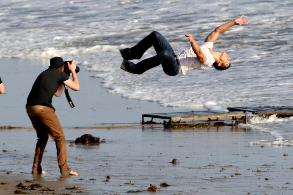 The paparazzi caught multiple photos from afar of Taylor striking a pose for the Rolling Stone photographer during his sultry beach session. And by striking a pose, I mean doing multiple flips in soaking wet jeans. Sadly, none of the shots made it into the article. If a Taylor Lautner flips in a tight white tee and Rolling Stone doesn't publish it, does it even melt your heart? (Yes.)