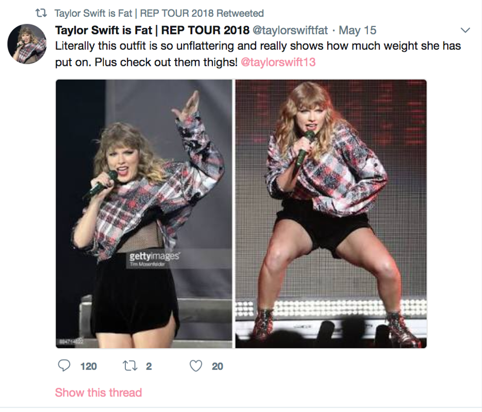 Recently there has been an outcry against a Taylor Swift "fan" account on Twitter who has been publicly fat-shaming the 28-year-old singer.