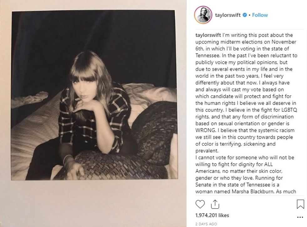 Stated by CNN, Taylor's most recent Instagram post caused a massive spike in voter registration.