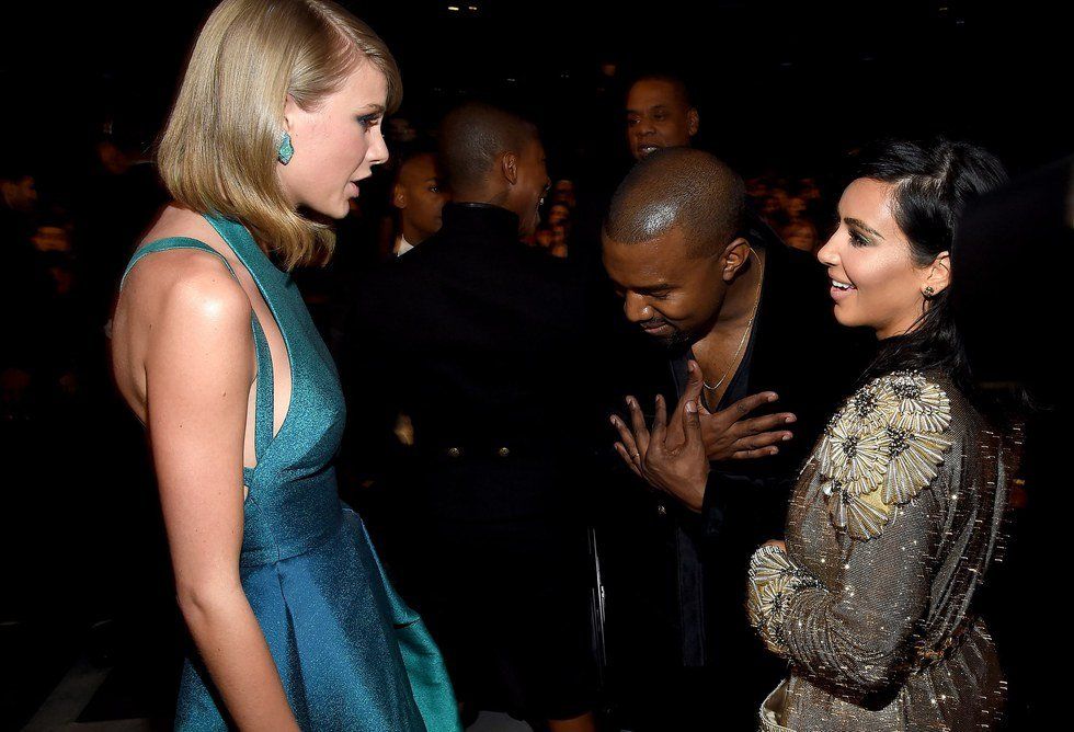 The on-again, off-again frenemies Taylor Swift and Kanye West got into a battle of their own involving Kanye's wife and famous reality TV star, Kim Kardashian. Kanye wrote a song involving Taylor with the several lines one of which "I made that bitch famous." Taylor reacted to the song claiming she never gave Kanye permission to write about her in his song.