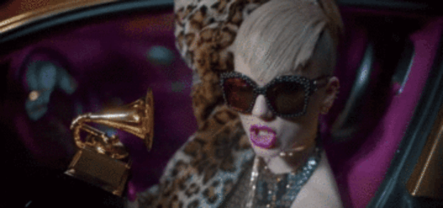 6. At 1:08, a bizarre scene goes down where T Swizzle has crashed her gold car into a pole with a cheetah and a Grammy
