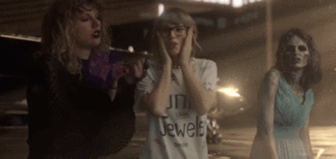 Finally, the ending of the video, in which so many burns are dished by Taylor, to Taylor... 100% literally. First, Zombie Swift throws "You Belong With Me" Swift some shade by telling her to "stop making that surprised face, it's so annoying." Which prompts White Swan Swift to add "You can't possibly be that surprised all the time." Which is something Taylor was made fun of for all the time during that time period. She realizes now she way overdid it and isn't afraid of laughing at herself.