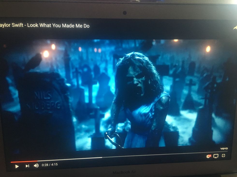 At around 0:28 seconds, Out of The Woods zombie Taylor has burst from the ground and begins to dig Taylor's grave. It's T Swizzle's way of really showing us that the old Taylor is dead. She's gone, and this new Taylor is out for blood.