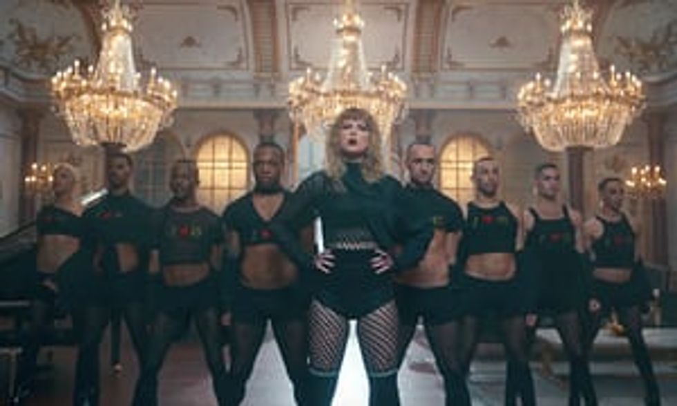 Taylor is kind of a cat person. First the cat burglars, and then at like 1:52, Tay seems to be like, evil dictator, and totally has the giant screens behind her flashing between cats and the word "squad." Which is actually the next self-inflicted burn. Taylor first debuted her #Squad during the music video for "Bad Blood" and spent literally the entirety of the 1989 Tour parading her squad around all the most glamorous cities with some extremely #aesthetic photo ops. However, many people gave the queen some serious trouble because her friend group seemed to all look relatively the same. So Tay responds to these criticisms via creating a squad army in her new video. #TaylorSquadTakingOver (Let's get it trending guys, this is hashtag gold).