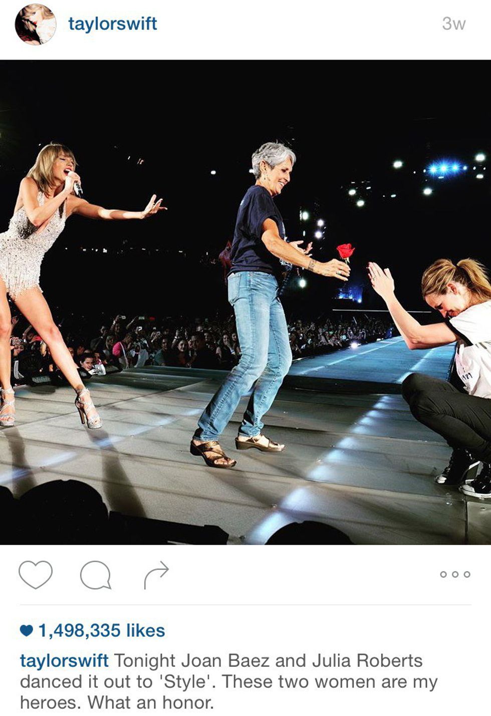 Two words. Julia FREAKING Roberts! (Okay, three, I'm sorry.) Shout out to Ms. Baez as well, but Julia Roberts. The dream.
