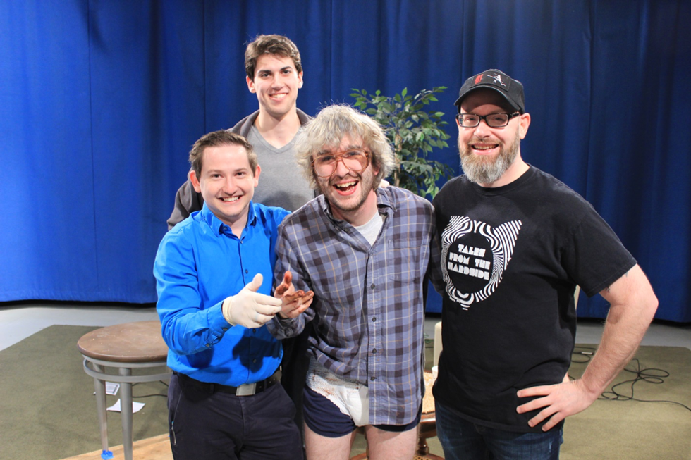We film anywhere we can, but it usually ends up at DATV, Brandon's house, or my house. We are definitely branching out more, though. We have been accepting help from anyone willing to be on camera ranging from local comedians/podcasters, Don Smith, Laura Rea, Jimmy Mallas, Izzy Rock, and Juliana Crask, to my supportive fiance Nicole.