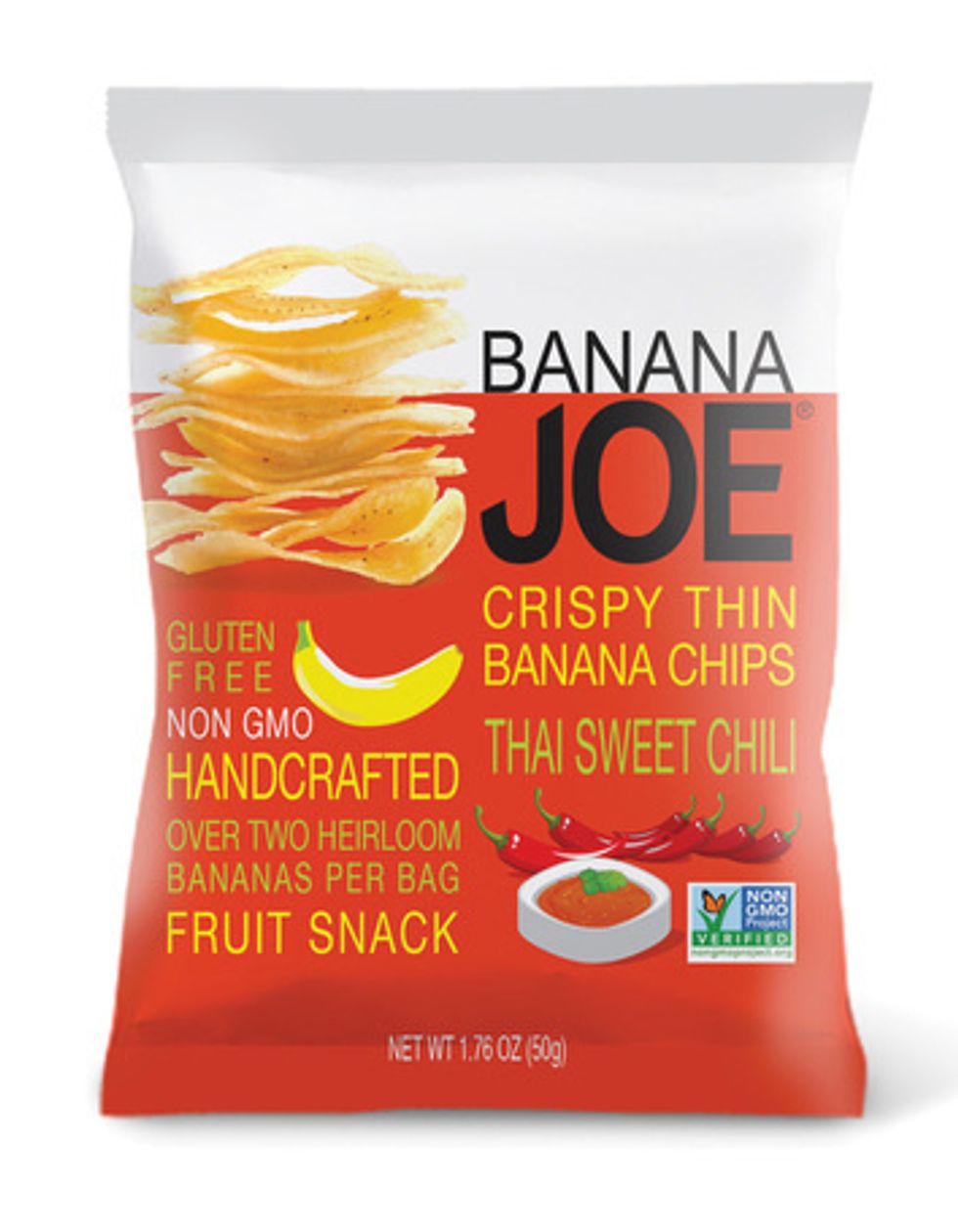 These banana chips contain no GMO's, natural flavors, gluten free, and 0 trans fat. The chips make for a great alternative to high sodium potato chips and come in fun flavors that make eating easy. The flavors are:Sriracha with pickled garlic, Gruyère cheese, Sea Salt, Thai Sweet Chili, and BBQ. You can purchase the snacks on amazon at https://www.amazon.com/Banana-Joe-SUSTAINABLE-util...=sr_1_28_a_it?ie=UTF8&qid=1527045094&sr=8-28&keywords=banana+joe . Enjoy!