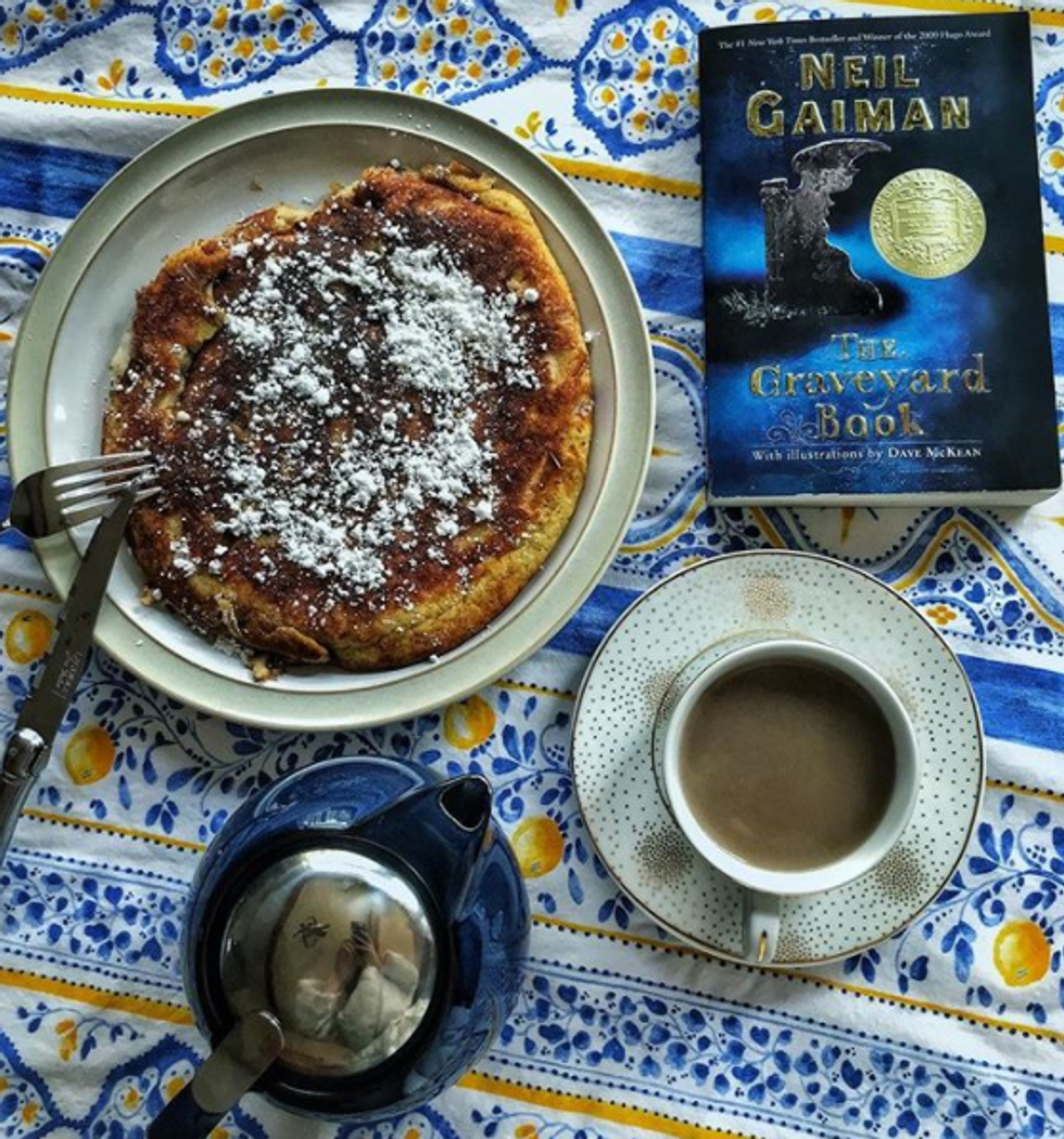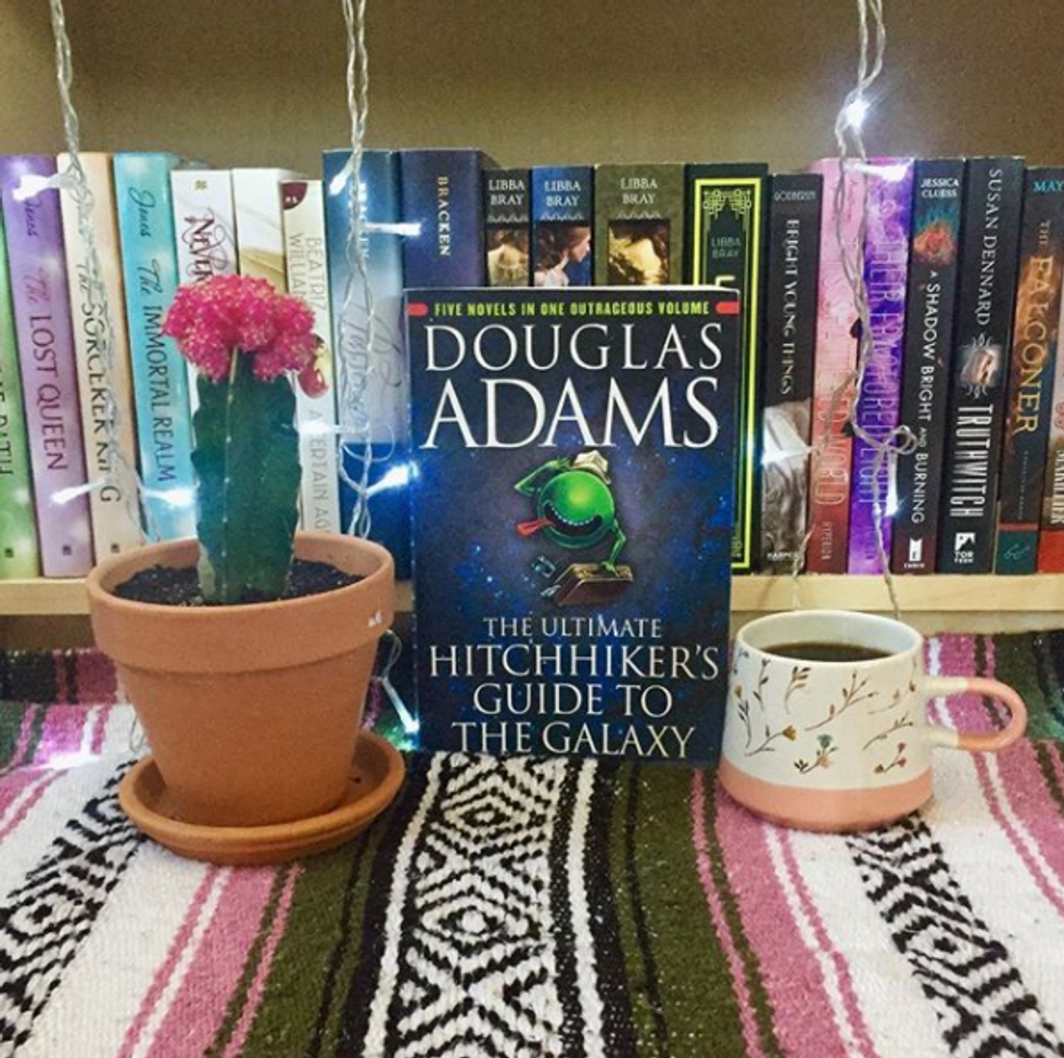 10. English Breakfast and "The Hitchhkiker's Guide to the Galaxy" by Douglas Adams.