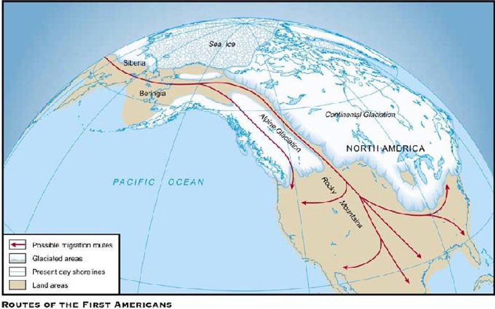 First, courses would focus on the history behind how the native peoples of the Americas arrived. According to scholars (and the History Channel), the ancestors of America's natives traveled here on what they call a "land bridge" from Asia to what is now known as Alaska nearly 12,000 years ago. They have estimated nearly 50 million people already lived in the Americas by the time European settlers came to the new world.