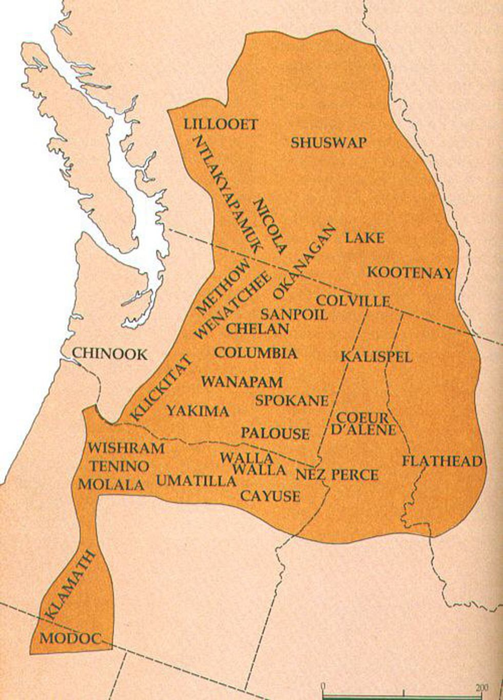 This region sat in present day Idaho, Montana, Oregon and Washington. The people that lived here were peaceful and lived in small villages near the many rivers and streams. They primarily spoke either Penutian or Salishan dialects. The indigenous people here included the Klamath, Klikitat, Modoc, Yakima, Flathead, Spokane and Columbia. After Louis and Clark traveled through this land, many white settlers passed through which brought disease and death. Many others have since been forced onto reservations by the government.